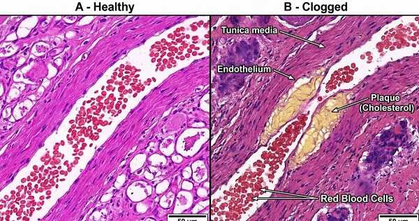 You see, the tiny blood vessels running through your penis get clogged over time by a certain kind of plaque, actually made out of cholesterol. This blockage restricts blood flow, making it harder and harder to achieve and maintain firm erections.